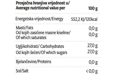 Sadrži prirodno prisutne šećere. Pogodan za dijabetičare.