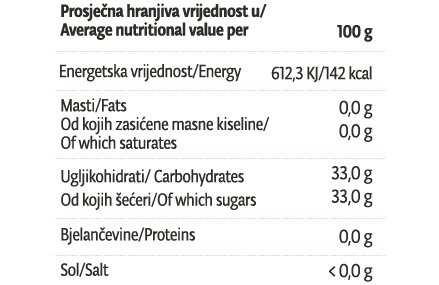 Sadrži prirodno prisutne šećere. Pogodan za dijabetičare.