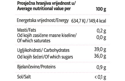 Sadrži prirodno prisutne šećere. Pogodan za dijabetičare.