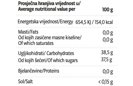 Sadrži prirodno prisutne šećere. Pogodan za dijabetičare.