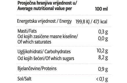 Bez dodanog šećera, vode, aditiva i konzervansa. Pasterizirano.