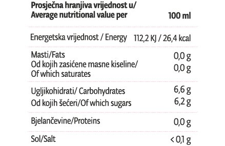 Sastav: 100% sok jabuke, voćna kaša višnje